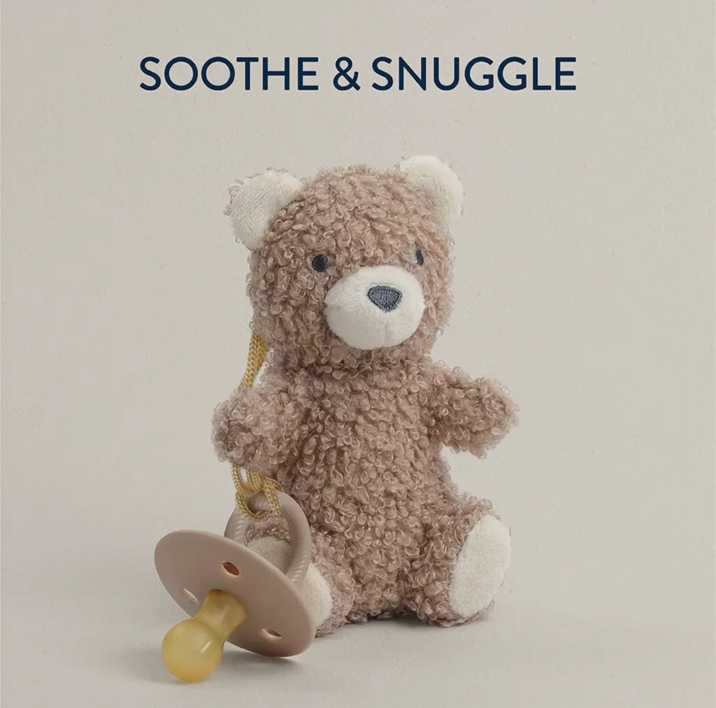 self-soother all-in-one! Extending from our Bitsy Bespoke™ toy collection comes a playful plush lovey beautifully crafted with a soft, cotton textile & complemented by a pacifier featuring a natural rubber nipple. Vibe check: instantly soothing & cuddly.